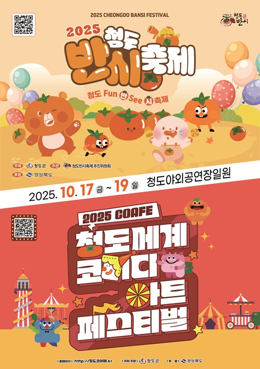 청도군이 오는 10월 17일부터 19일까지 3일간 청도야외공연장 일원에서 ‘2025 청도반시축제’와 ‘청도세계코미디아트페스티벌’을 동시 개최한다.