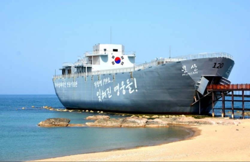 한국전쟁 당시 장사상륙작전에 투입됐던 LST 문산호를 재현한 ‘장사상륙작전 전승기념공원’이 재개장됐다.