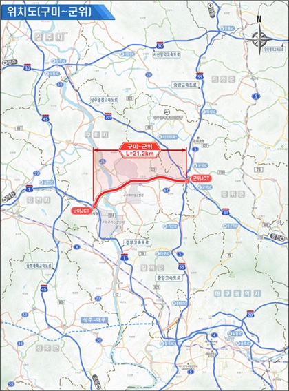 구미–군위 고속도로는 총 21.2km 구간을 잇는 왕복 4차로 신규 노선으로, 총사업비 1조 5627억 원이 투입되는 국가재정사업이다.