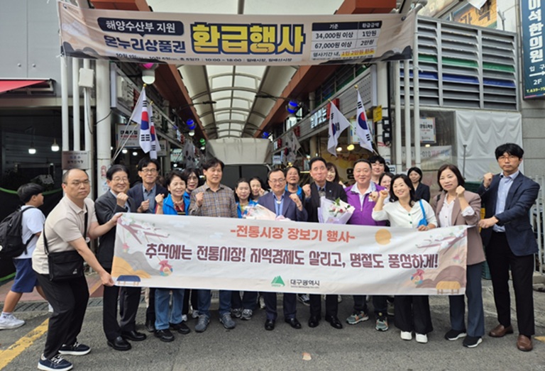 이어 월배·월배신시장을 찾아 제수용 물품을 직접 구입하며 상인들을 격려했다.